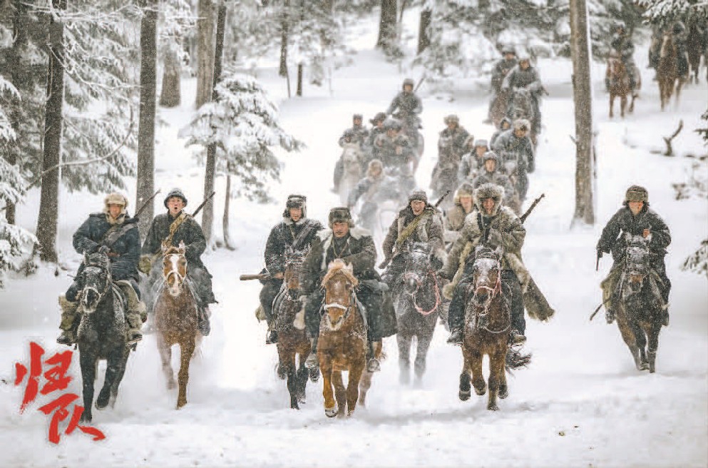 2025年9月3日,在纪念中国人民抗日战争暨世界反法西斯战争胜利80周年阅兵式上,战旗方队中“杨靖宇支队”的字样格外醒目,《归队》中也出现了东北军民集体悼念杨靖宇的仪式性片段。抗联这支称为中国抗日战争史中“抗敌最早、坚持最久、条件最恶”的队伍,不应被人民遗忘,也不应被时间遗忘。《归队》通过丰满的人物线索与出色的故事完成度,实现了对“打不散”的抗联队伍的追认,同时也让抗联历史完成了对中国人民14年抗日战争史的“归队”,让平民英雄完成了对战争背景下人性光辉的“归队”,也让当代观众完成了对抗日战争集体记忆的“归队”。