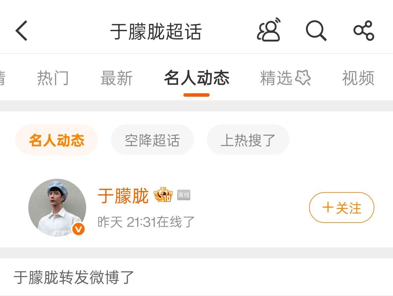 记者注意到,于朦胧微博超话显示,其个人账号昨晚9点31分在线,微博最新动态则停留在一周之前。