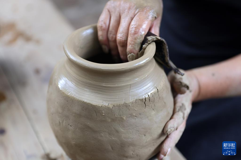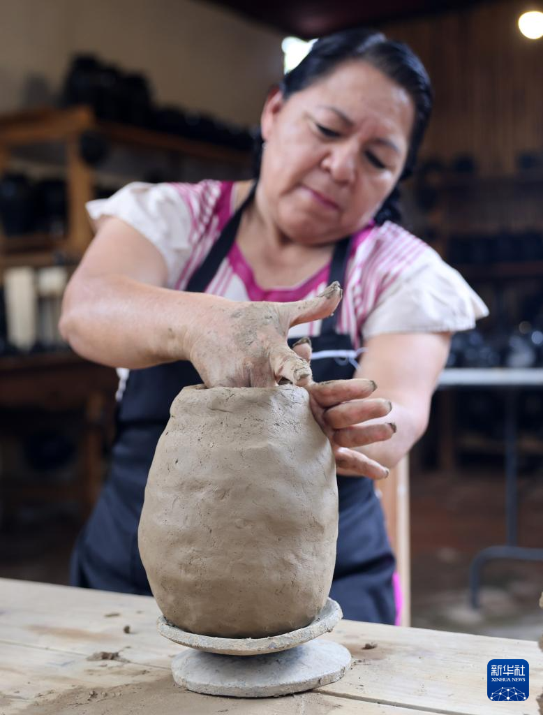 9月14日,在墨西哥瓦哈卡州的圣巴托洛科约特佩克市,一名黑陶手工艺者给陶土塑形。