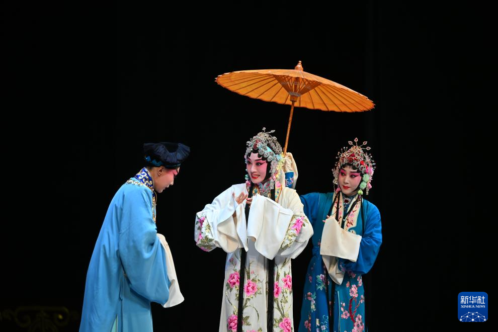9月13日,演员在天津大礼堂表演戏剧选段。