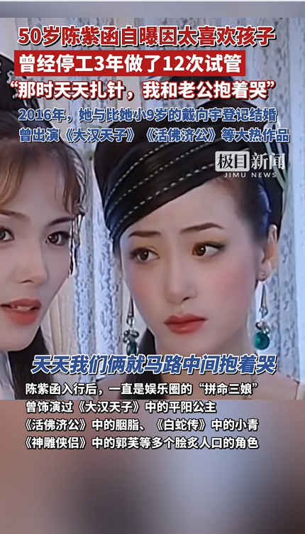 9月20日,50岁演员陈紫函近日在综艺《天声一对》中爆料因太喜欢孩子曾经停工3年,做了12次试管。