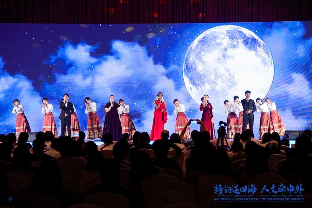 新华网南昌9月27日电(王中庆 吴亚芬)9月26日下午,“赣韵连四海 人文牵中外”2025江西省中外人文交流中秋联欢会暨第十二届江西省外国留学生汉语大赛颁奖仪式在南昌举行。中外师生欢聚一堂,以月为媒、以文会友,共庆中秋佳节,共享文化盛宴。