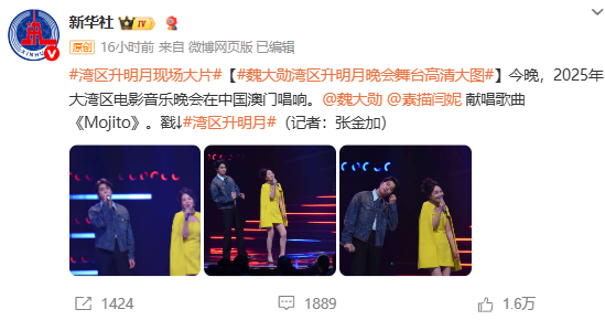 2025年大湾区电影音乐晚会在中国澳门唱响,魏大勋和闫妮携手献唱歌曲《Mojito》,引发不少关注,“闫妮魏大勋不许再酗酒了”“闫妮 发疯的香蕉”话题冲上热搜。