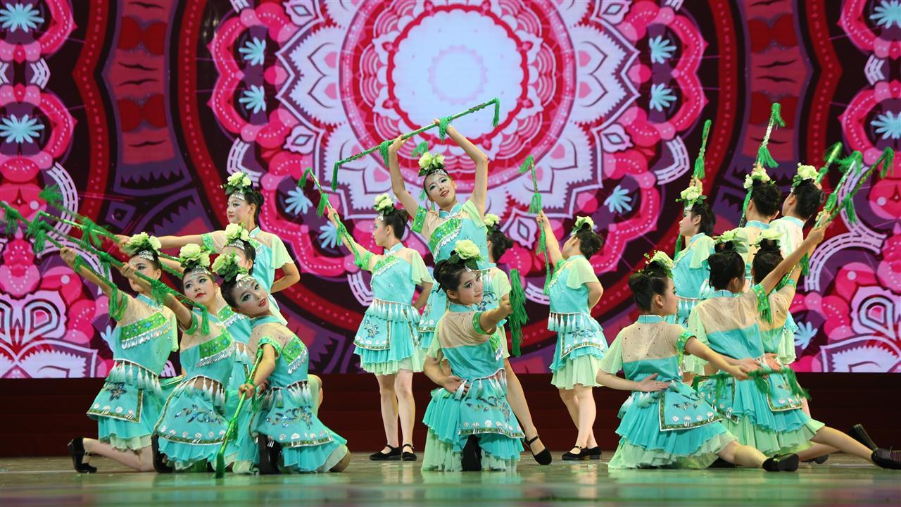 展演现场,来自黄石阳新县、鄂州汀祖镇、大冶茗山乡、红安县、荆门钟祥、荆州江陵县等地的孩子们充满活力与希望,用欢快的舞蹈表达对未来的憧憬。咸丰县、五峰土家族自治县、利川市柏杨坝镇、咸宁市横沟桥镇的学校融入当地的文化元素,体现出“种文化、育文明”的美育成果。