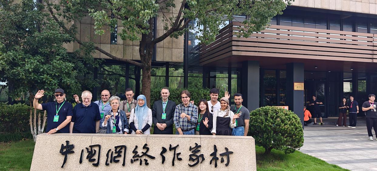 2025中国国际网络文学周期间,海外作家代表参访位于杭州的中国网络作家村。新华社记者余俊杰 摄 中国网络文学还通过影视剧、游戏、动漫等IP改编,有效扩大海外传播范围,成为全球文化市场的重要组成部分。
