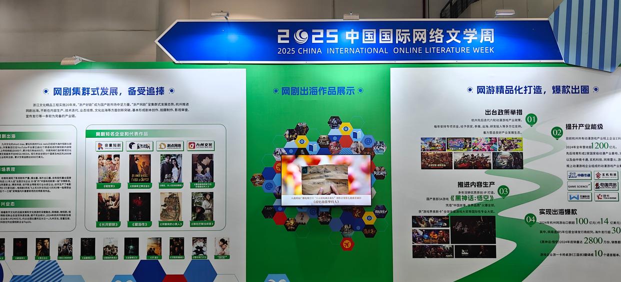 2025中国国际网络文学周期间,展示的中国文化“新三样”出海成果。新华社记者余俊杰 摄 正如互联网刚出现时拓展了文学的边界,AI对网络文学的“边疆”也会有极大开拓。网络作家周塨楠认为,写作者应该以大文艺的全局观看待AI技术。“当前大多数网剧IP来源于网络小说,未来借助AI,有机会实现从文学IP到视觉内容的直接转化。”