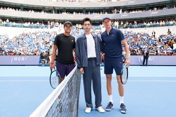 当天,李现为决赛选手辛纳和勒纳·钱担任挑边嘉宾。随后他在观众席忙着抓拍精彩瞬间,在他身边,观众们还发现了靳东。