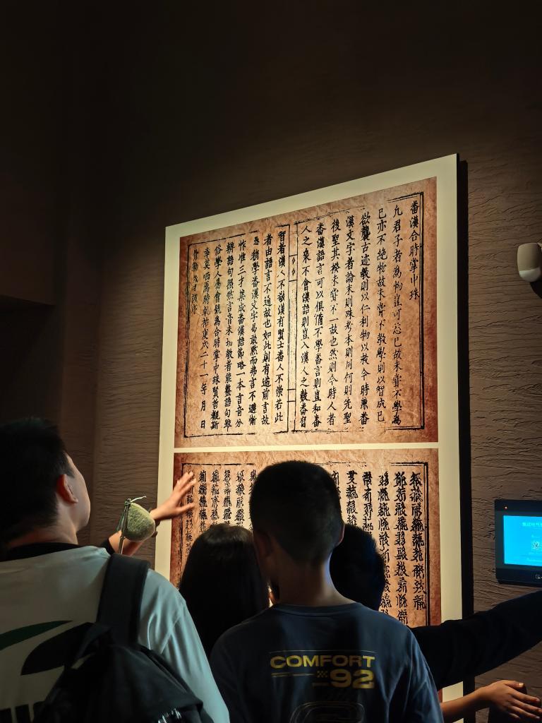 10月2日,游客在西夏陵博物馆了解汉文和西夏文对照的《番汉合时掌中珠》序言。新华社发