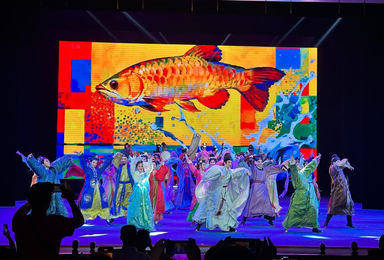 演出结束后的“彩蛋”,全体演员返场跳起动感流行舞蹈。新华社记者 邓倩倩 摄 演出尾声的谢幕“彩蛋”将氛围推向高潮,全体演员返场活力四射地跳起“大展宏图”动感流行舞蹈,台下欢呼声此起彼伏。