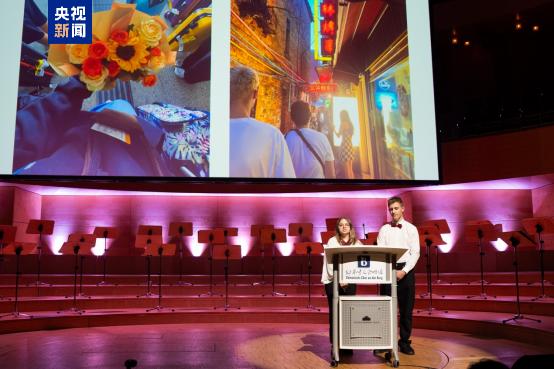 音乐会的上半场聚焦今夏举办的“汉语桥”夏令营。德国学生们通过视频回顾、现场演讲和图文展示,分享了他们在中国的所见所感。从丰富多样的饮食文化到独具魅力的民族风情,从课堂学习到合唱排练,每一段讲述都饱含同学们对中文学习的热情和对中国文化的喜爱与认同。