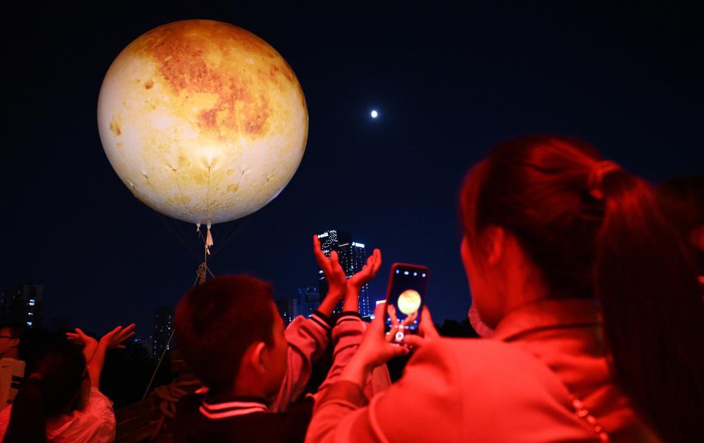 ↑游客在重庆市沙坪坝区参加中秋文化活动。CICPHOTO/游金华 摄