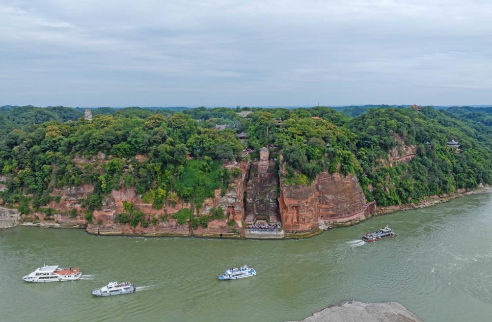 ↑在四川省乐山市市中区拍摄的乐山大佛。CICPHOTO/乐山大佛文物保护(景区)管委会、中共乐山市市中区委宣传部供图