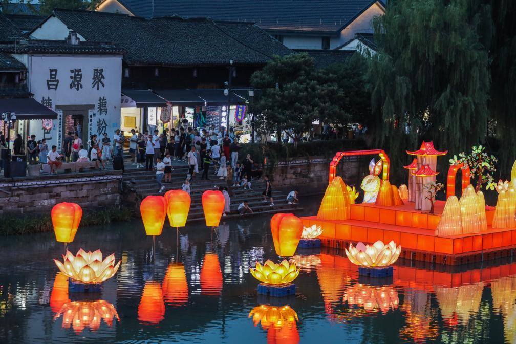 国庆中秋“双节”期间,游客在塘栖古镇观赏运河花灯。新华社记者 徐昱 摄又是一年月圆时。在这个温馨的日子里,身在异乡的人,“举头望明月,低头思故乡”;能够返乡的人,“团圆最相称,尽饮至深更”。