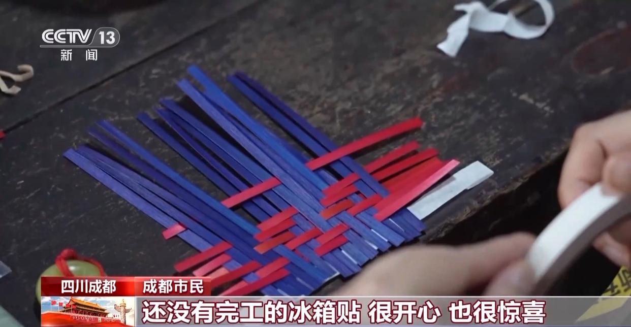 成都市民:这是一个竹编冰箱贴,还没有完工的冰箱贴。很开心,也很惊喜,在茶馆里面,非遗和茶结合起来,太棒了!