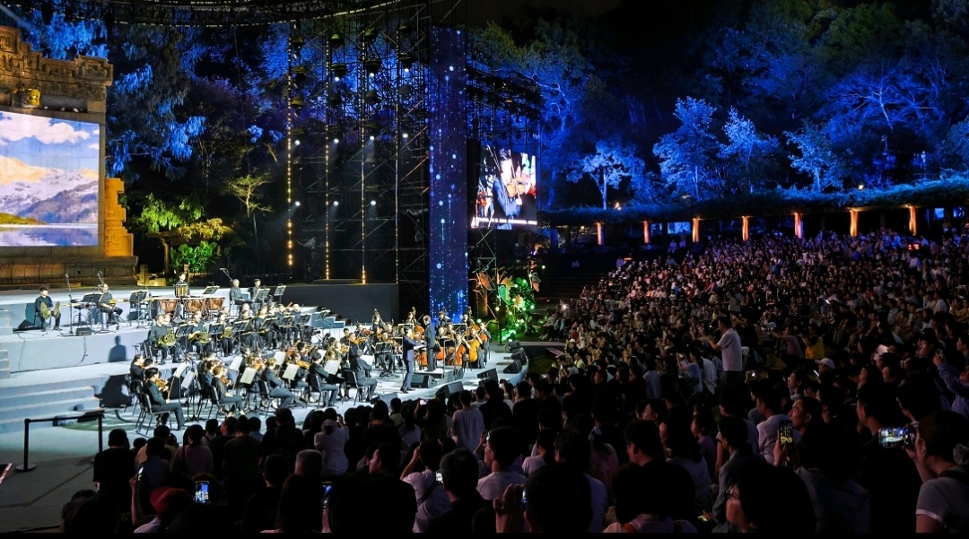 现场,著名指挥家叶咏诗携手苏州交响乐团,与小提琴家陈锐为观众带来一场融合自然与艺术的交响盛宴,以跨越时空的经典旋律,在百年音乐台编织出“月光与琴弦共舞”的双重浪漫。(朱静)