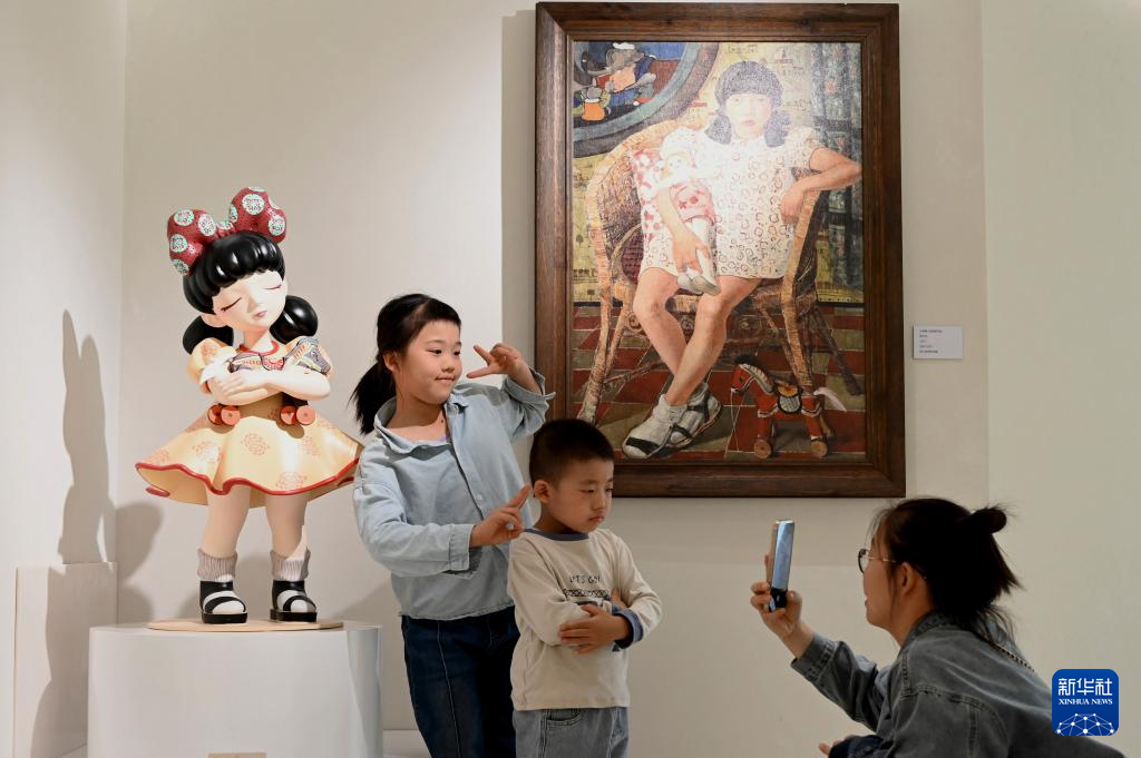 10月7日,游客在敦煌无界常沙娜艺术中心拍照。