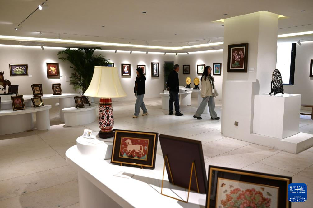 10月7日,游客在敦煌无界常沙娜艺术中心参观。