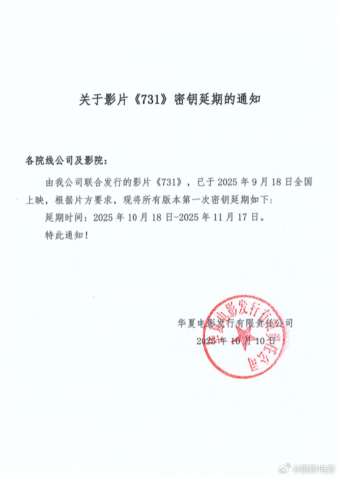 电影《731》官宣密钥延期,延长上映至11月17日,据猫眼专业版数据,截至当前影片累计票房已超18.77亿。