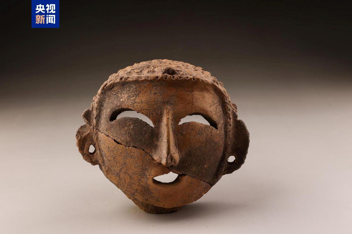 考古人员介绍,这件陶塑人面像加工精致,头顶饱满。远古先民用戳刺纹表示头发,两眼呈镂空月牙形,鼻梁挺直,略呈鹰钩状。口部镂空微张,呈微笑状。双耳贴于脸颊两侧,耳垂下方有穿孔耳洞。宽约14厘米,高12.5厘米,厚0.8~1厘米。