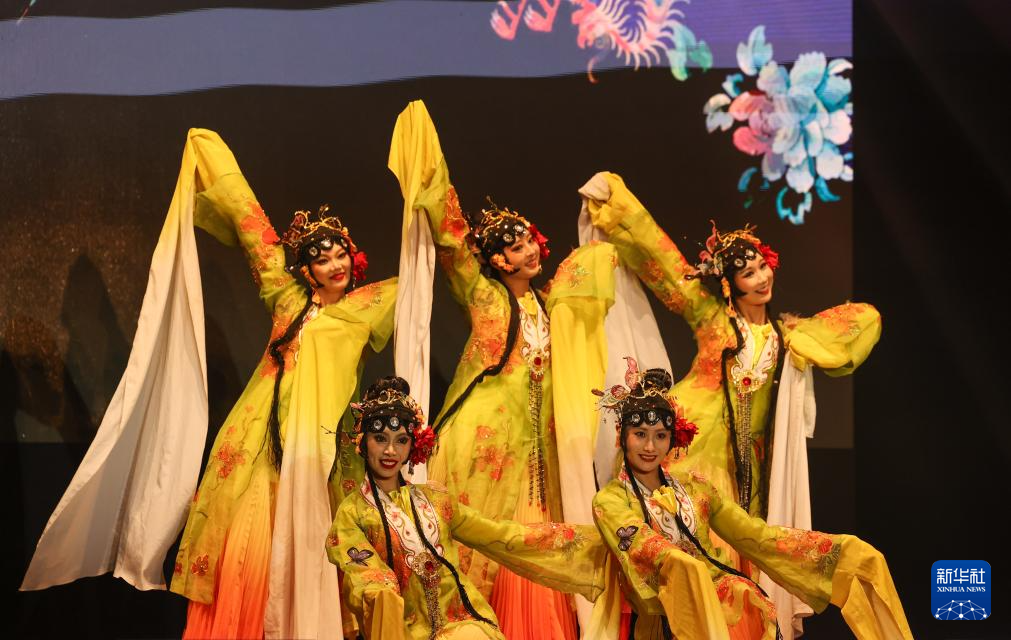 10月11日,在摩洛哥首都拉巴特举行的“天涯共此时”中秋晚会上,演员表演舞蹈《百花争妍》。