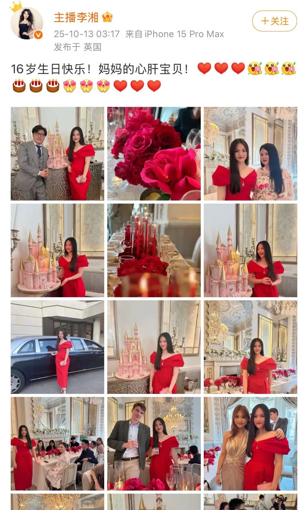 北京时间10月13日凌晨3时许,李湘在社交账号晒出了18张图,分享在英国为女儿庆祝16岁生日的欢乐场景。她还称王诗龄为“妈妈的心肝宝贝”,字里行间都透露着宠溺。