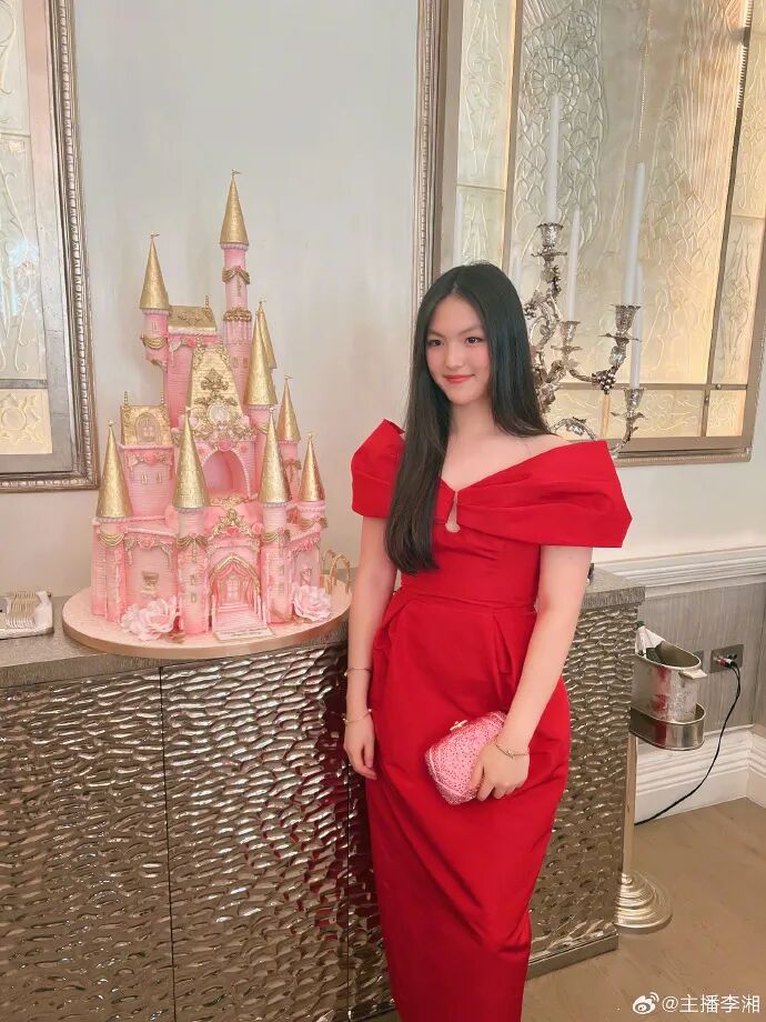 李湘分享的图片中,王诗龄身穿红色礼服,落落大方地在宴会厅招待前来参加生日聚会的中外好友。她的16岁生日蛋糕为粉红色城堡造型,这也让人联想到当年王诗龄在《爸爸去哪儿》里说的那句经典之语:“我不是大明星,我是小公主!”