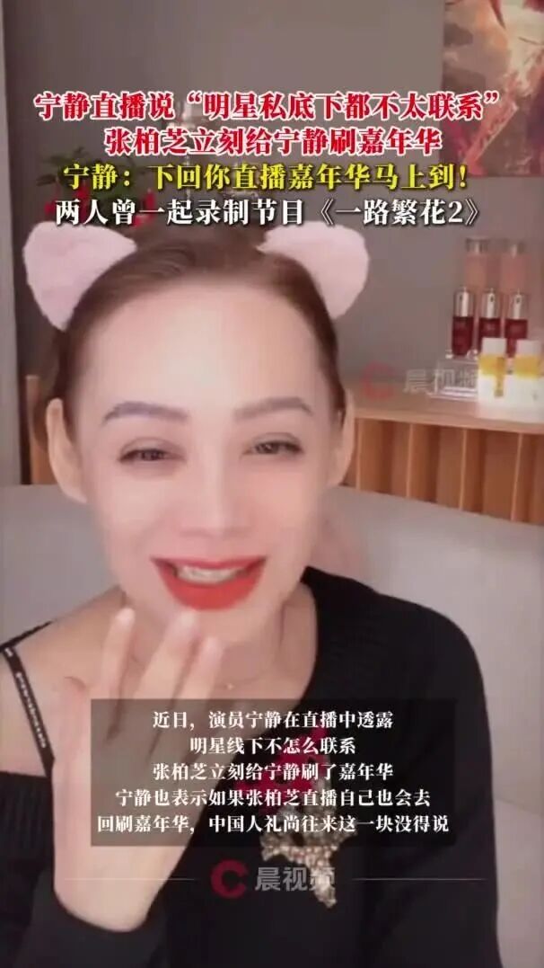 近日,张柏芝突然出现在宁静的直播间,并给宁静刷了一个虚拟礼物“嘉年华“。宁静当场笑着调侃:“哎呀,芝芝我不是要套你的嘉年华。其实明星私下联系都不多的。下次你直播的时候,嘉年华马上到。”