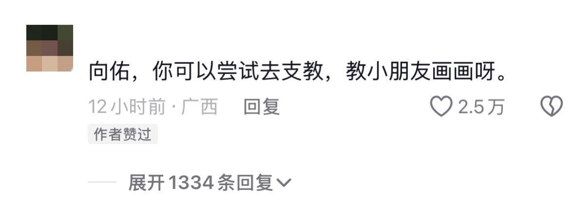 有网友分析,向佑其实是一个高智商、高敏感内心的孩子,他的所作所为其实都是为了得到父母的注意,“内心深处其实还是渴望被爱,只是用错了方法。”还有网友建议,让向佑去山区支教,教小朋友画画,或许能让他走出心灵困境。