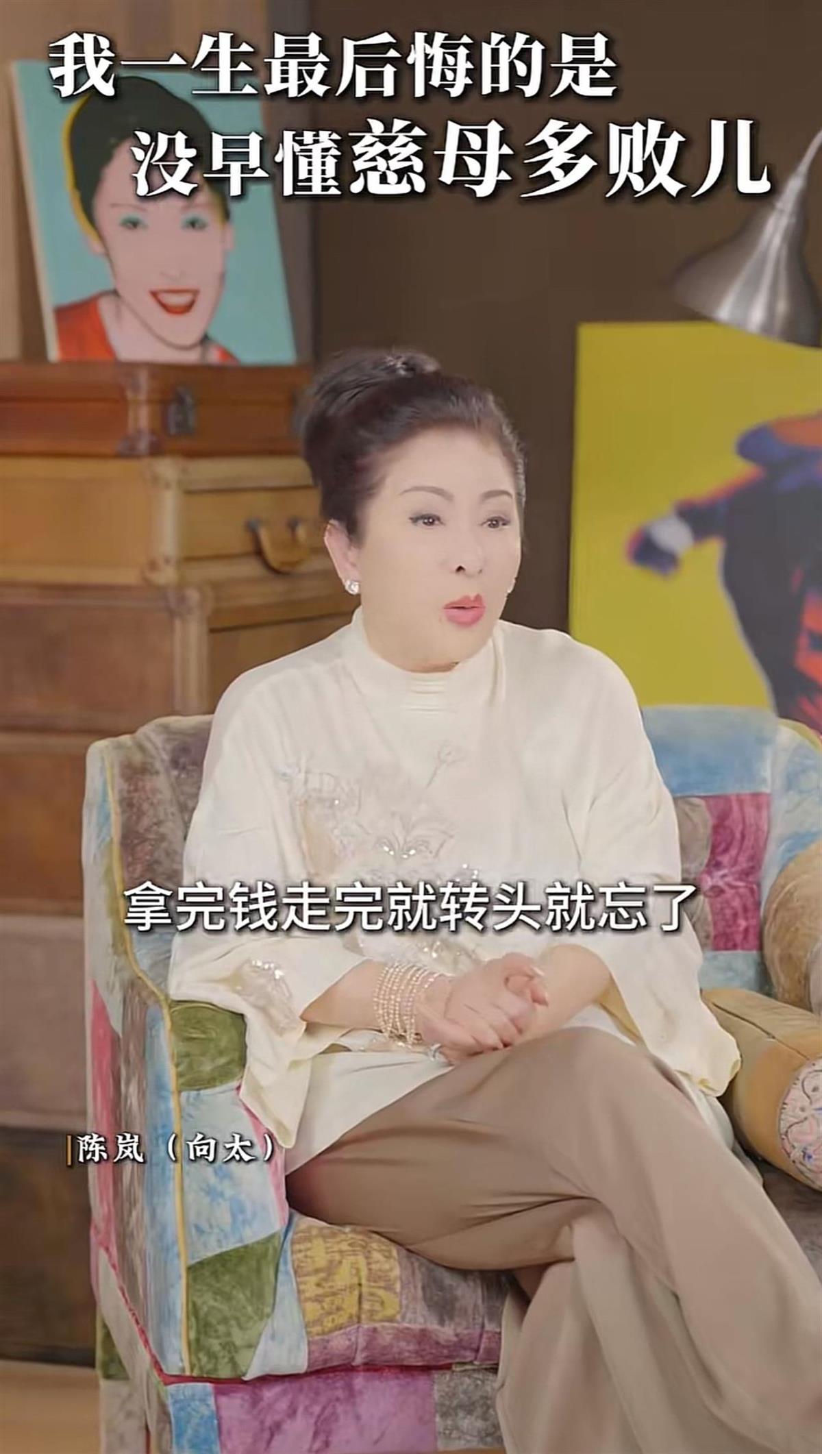 “我一生最后悔的是,没早懂慈母多败儿。”10月13日深夜,著名电影人向太陈岚发布视频,首次公开谈论小儿子向佑的人生路。她反复说很后悔给了向佑太多钱,宠坏了他,但现在想改也来不及了,因为向佑会“威胁”她和向华强,如果父母不给他钱,他就出去借。