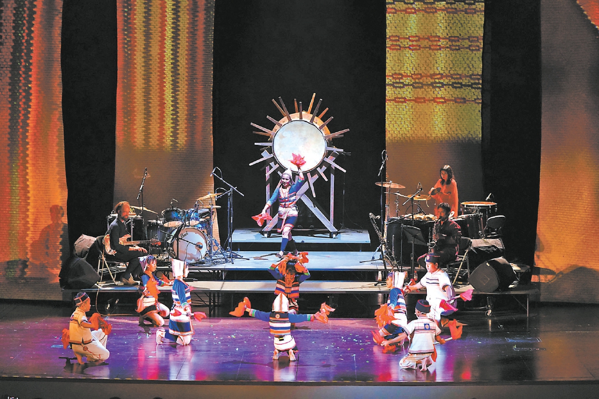 10月12日晚,一场将云南深山原始生命力融合跨越时空艺术想象力的演出登上北京舞台。作为第二十八届北京国际音乐节的重磅演出之一,由普利策音乐奖得主、华人作曲家杜韵倾力创作,北京国际音乐节与美国林肯中心联合委约的音乐剧场作品《刻在森林的海》在北京喜剧院世界首演。来自云南西双版纳的非遗项目基诺族大鼓舞传承人何桂英,带领8位基诺族少年,在舞台上敲响大山里特有的声音。