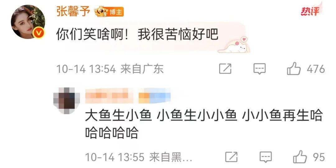 10月14日,“张馨予家里已经生了100多条小鱼了”的词条,冲上文娱榜热搜。