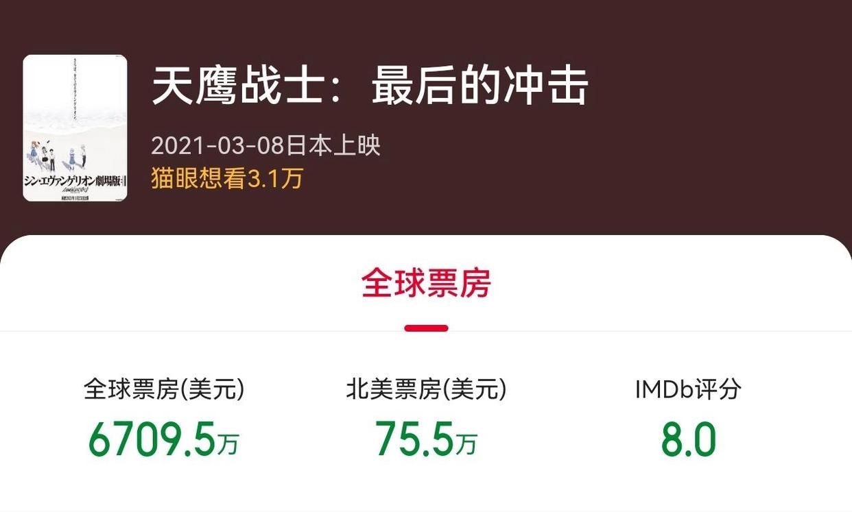 今天(10月15日),《新世纪福音战士》中国官方微博宣布动画电影《天鹰战士:最后的冲击》确认引进,上映档期待定。海报上提示:未成年观众谨慎选择观看。