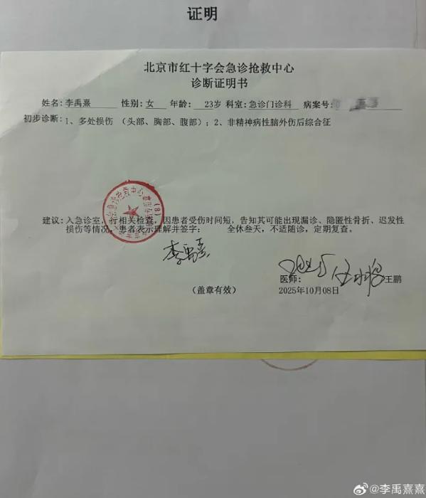 演员李禹熹发文喊话19岁男演员荣梓杉,曝荣梓杉恋爱期间出轨打人,她因其一度确诊中度焦虑和抑郁。