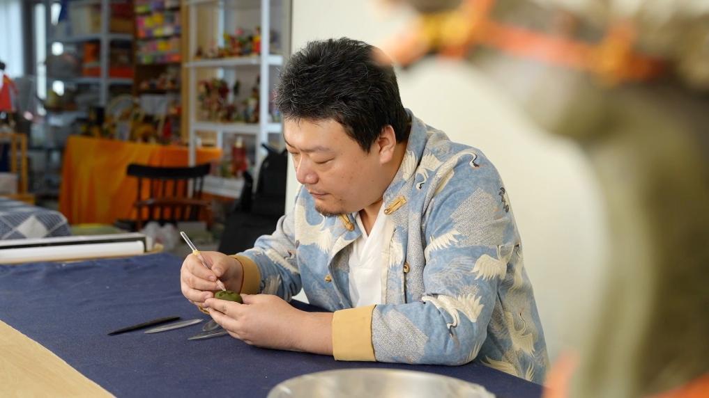 仅需几分钟的时间,一个小小面团就在张倍源的巧手中变成栩栩如生的人物头像。从海外求学的游子到面塑“破圈”达人,十年光阴里,他将面塑与动漫、演艺等艺术表现形式广泛融合。