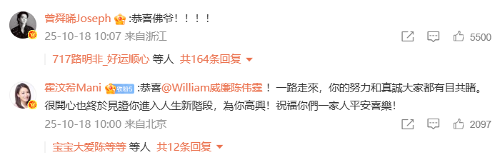 2025年10月18日,陈伟霆晒照官宣与何穗生子。