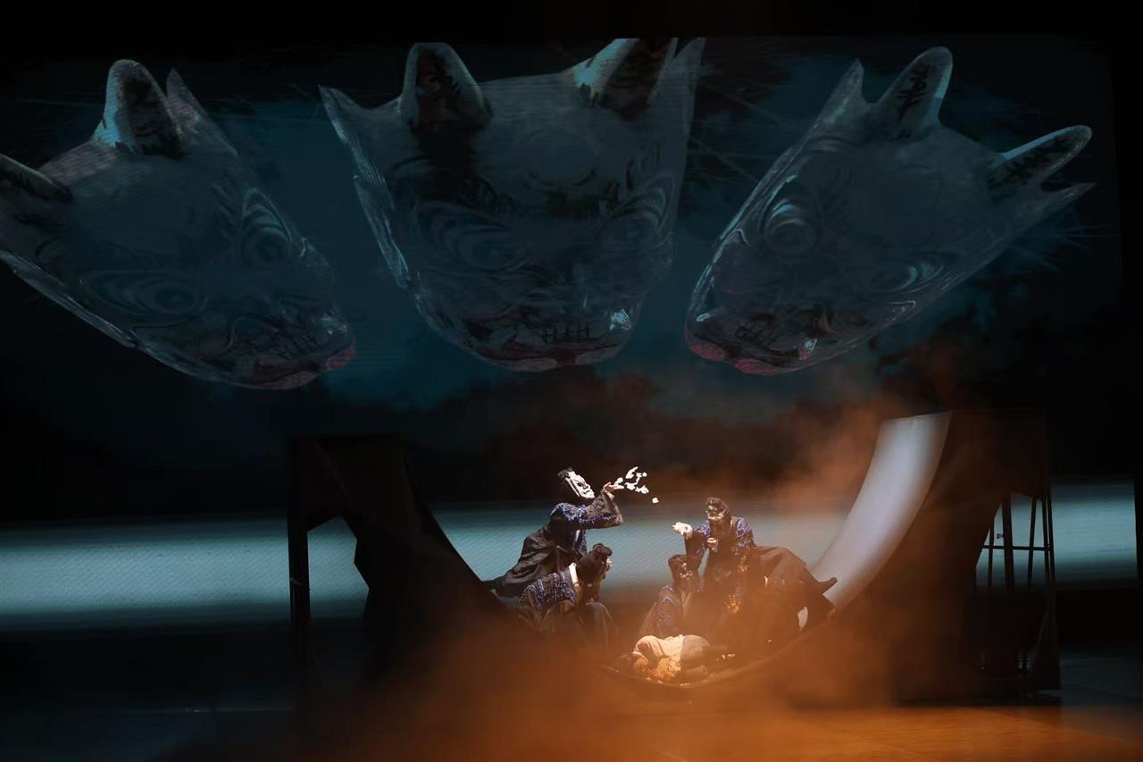 灯光渐暗,音乐渐起。舞台上,舞者以极具张力的肢体语言,将观众的思绪牵引到500余年前王阳明“龙场悟道”的历史场景。