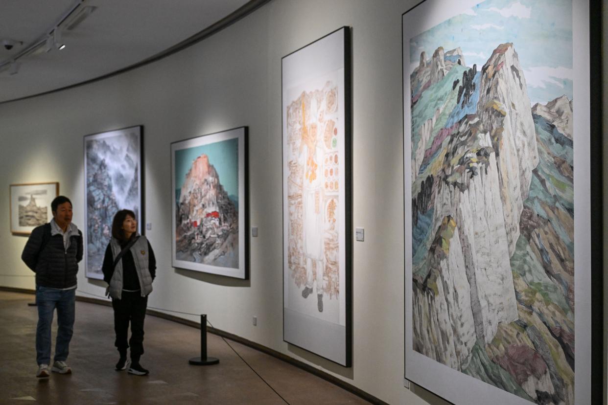 10月19日,参观者在陕西省美术博物馆欣赏艺术作品。新华社记者 邹竞一 摄