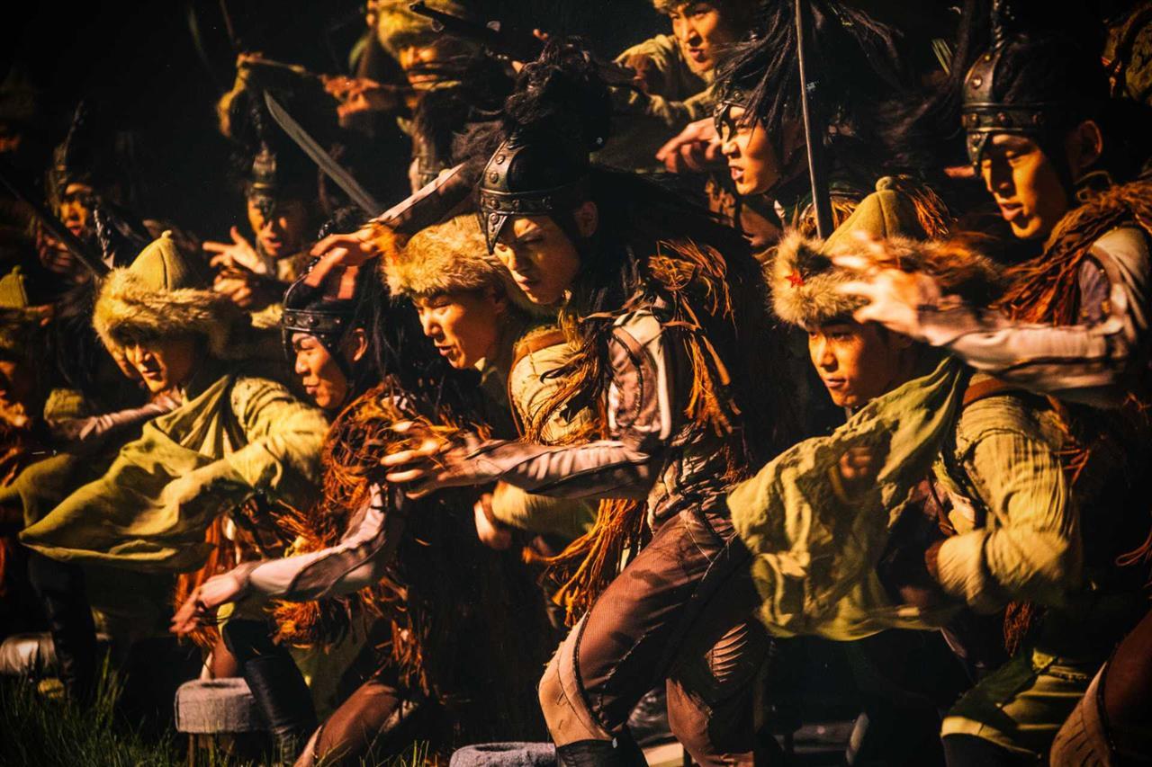 在表演上,《骑兵》充分调动歌舞、戏剧、音乐的综合表现力,将蒙古族舞蹈的豪放与细腻、草原音乐的悠远与激昂熔于一炉。但见舞台上,战马奔腾、硝烟弥漫的战争场面极具视觉冲击力,瞬间将人们带回到枪林弹雨的战争年代。随着剧中男主角朝鲁的成长故事层层推进,观众时而紧张或愤慨,时而欢欣或忧伤……而人与马之间超越物种的情感联结,也令观众动容。尤其是几段骑兵与战马的舞蹈,舞姿优美,情感充沛,令人陶醉。