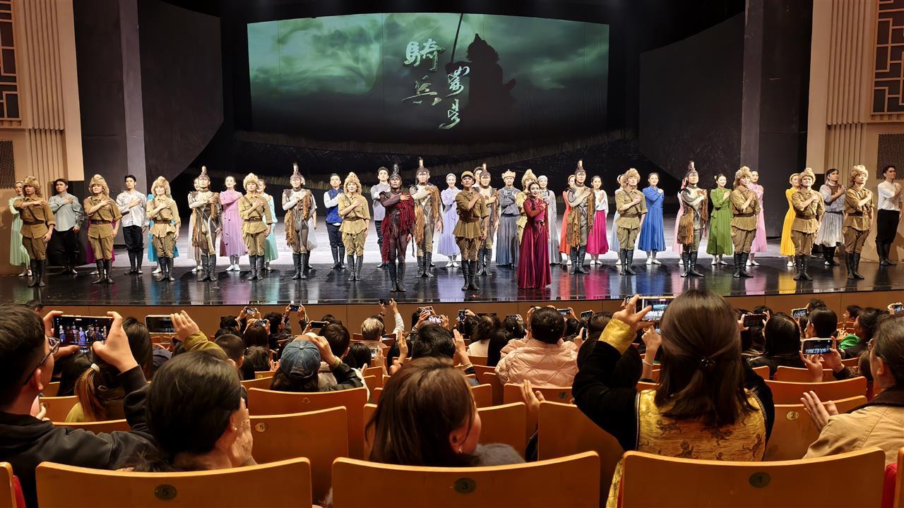 整部作品生动塑造了朝鲁、珊丹以及战马“尕腊”等鲜活的形象,将“骑兵精神”演绎得淋漓尽致,观众多次报以热烈掌声。剧终谢幕时分,台上台下互动,气氛热烈。
