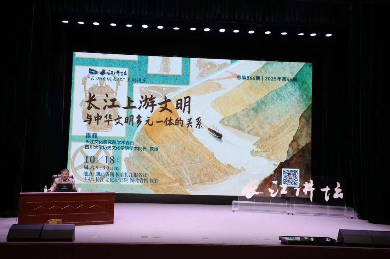 在“2025长江文化艺术季”期间,长江文化研究院联合湖北省图书馆举办“长江地域文化”系列讲座。10月18日,“长江地域文化”系列讲座第三讲在武汉开讲。长江文化研究院学术委员、四川大学历史文化学院学术院长霍巍教授带来题为“长江上游文明与中华文明多元一体的关系”的精彩讲座。