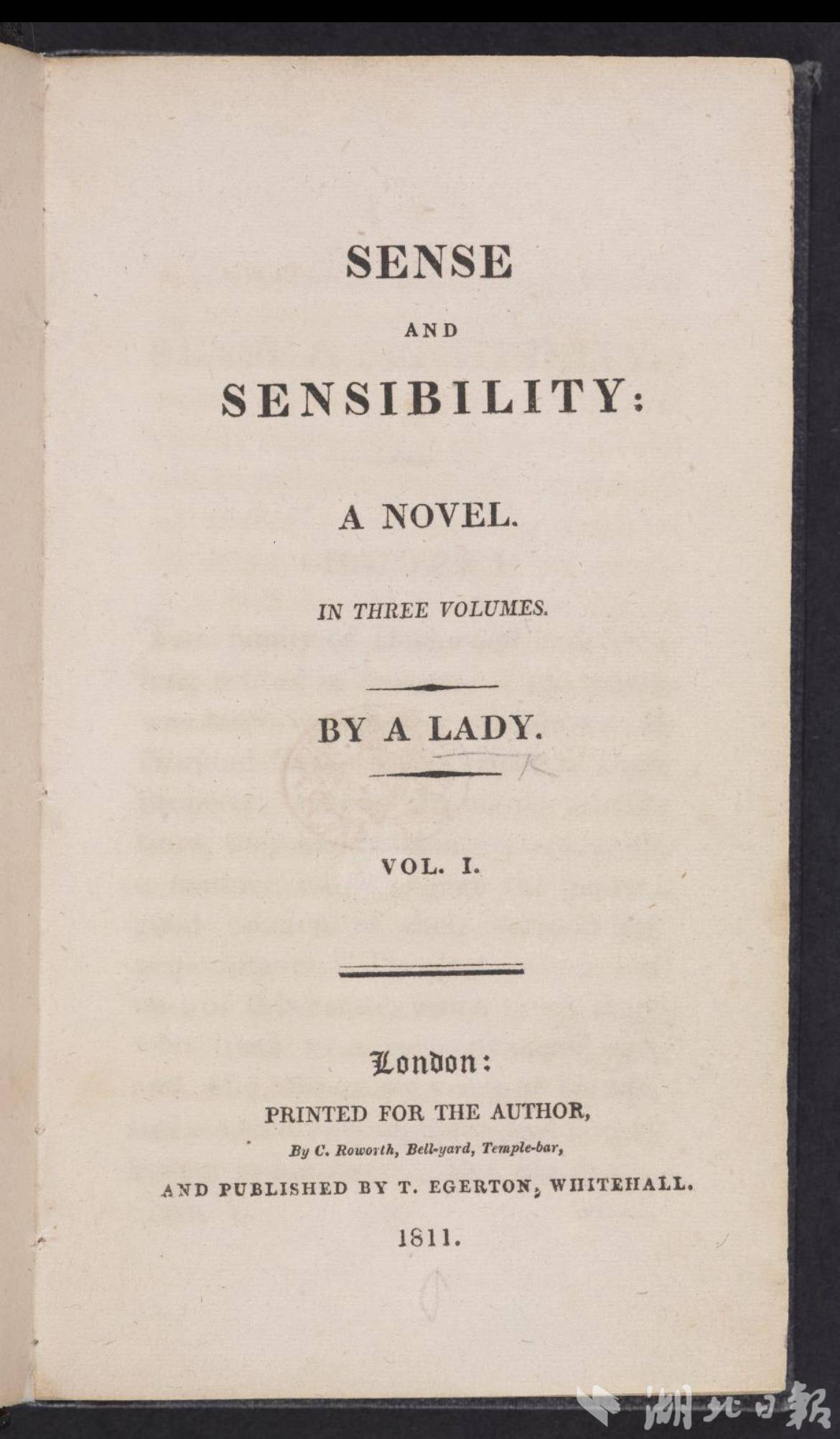 大英图书馆 简·奥斯汀《理智与情感》第一版扉页,