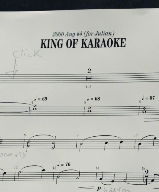 在配图中,陈奕迅还展示了2000年《k歌之王》的曲谱图片。