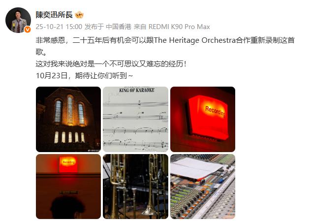 10月21日,陈奕迅在社交平台发文称:非常感恩,二十五年后有机会可以跟The Heritage Orchestra合作重新录制这首歌。这对我来说绝对是一个不可思议又难忘的经历!10月23日,期待让你们听到~