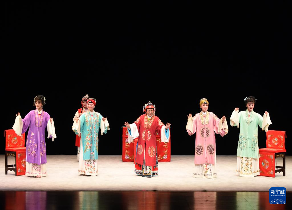 10月21日,在奥地利首都维也纳,演员在表演锡剧《珍珠塔》。