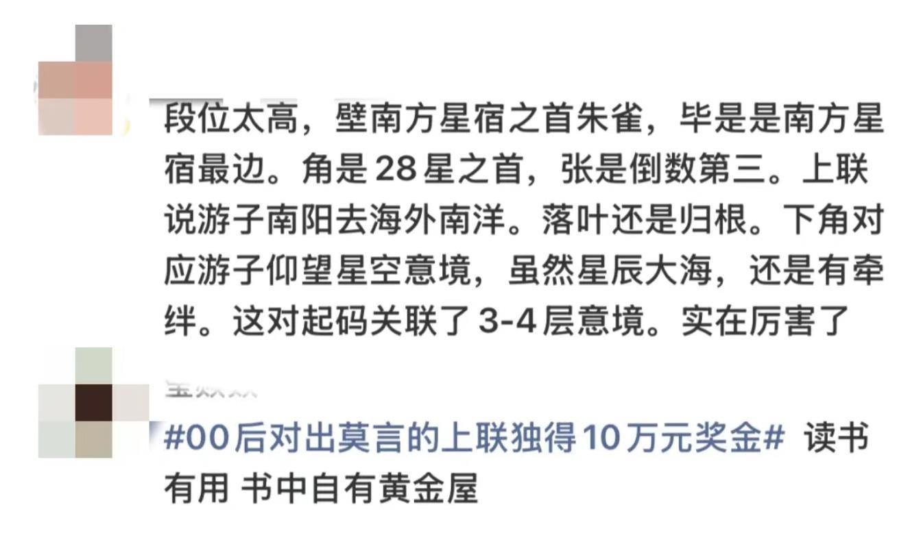 10月21日,话题#00后对出莫言的上联独得10万元奖金#登上热搜,引发各方关注。