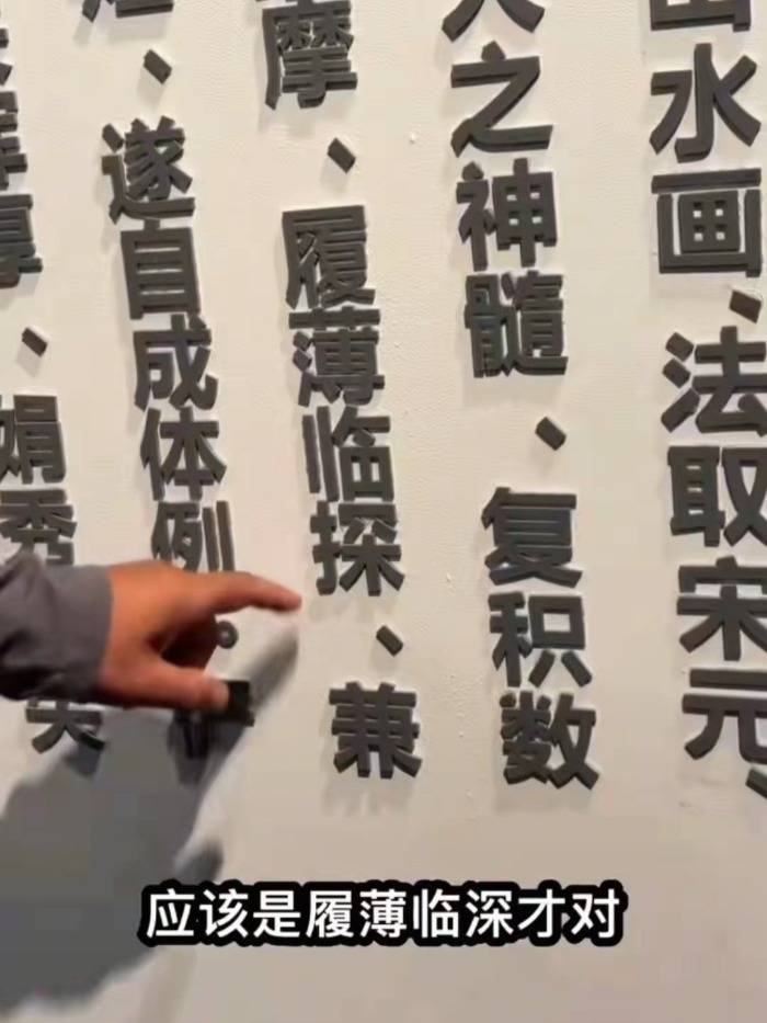 此事源于某网红在上海陆俨少艺术院参观时,指出墙上所写的“履薄临探”一词有误,应该是“履薄临深”,视频在网上流传后引发关注并引起讨论。有人认为,履薄临深为被大众所熟知的成语,且“探”与“深”字形相近,“履薄临探”应该是“履薄临深”的误写。还有人认为,成语可以灵活运用,结合文意变动,“履薄临探”的“探”有探索之意,解释得通,并非错误。