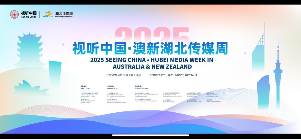 2025“视听中国•澳新湖北传媒周”由国家广播电视总局、湖北省人民政府指导,中共湖北省委宣传部、湖北省广播电视局共同主办,湖北省人民政府外事办公室、湖北日报传媒集团、湖北广播电视台、湖北长江出版传媒集团、湖北长江电影集团、湖北文化产业发展投资有限公司、武汉广播电视台、武汉出版集团等单位共同协办。