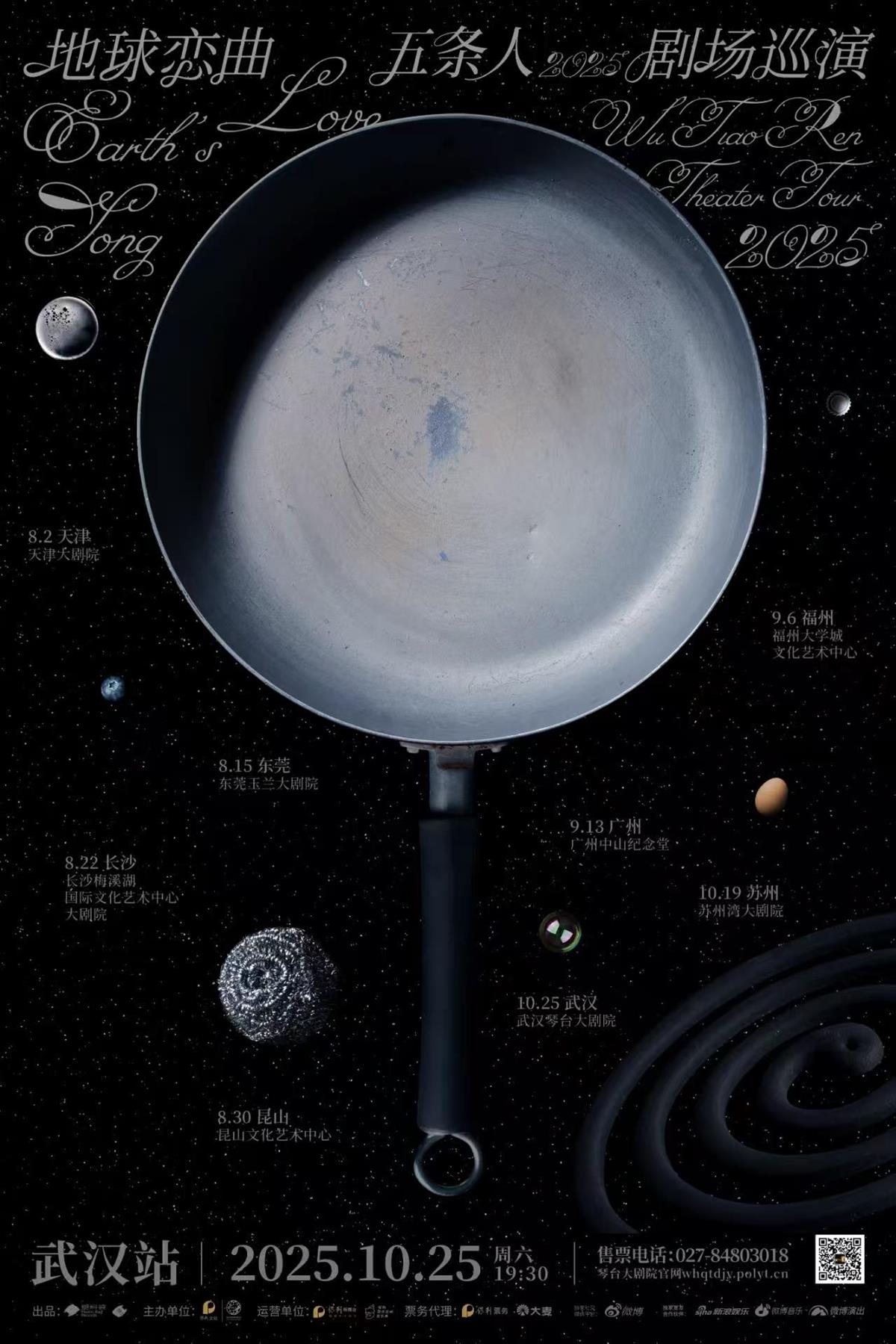 10月25日晚,琴台大剧院,知名乐队五条人将带来其全新“宇宙级浪漫企划”——《地球恋曲》剧场巡演。这场标志着五条人成立近十年来首次大规模剧场巡演的启航演出,将以更丰富的音乐语言和舞台呈现,为观众搭建一个充满诗意与想象力的“地球剧场”。
