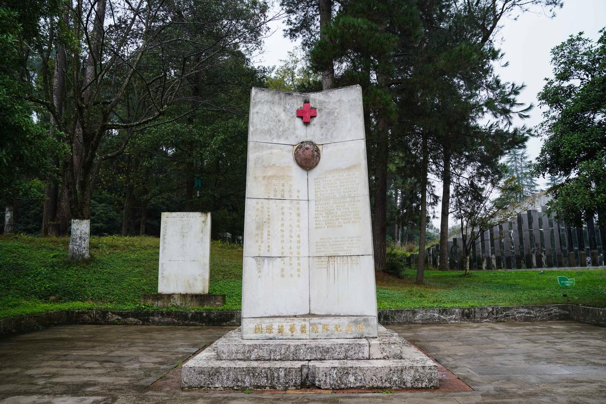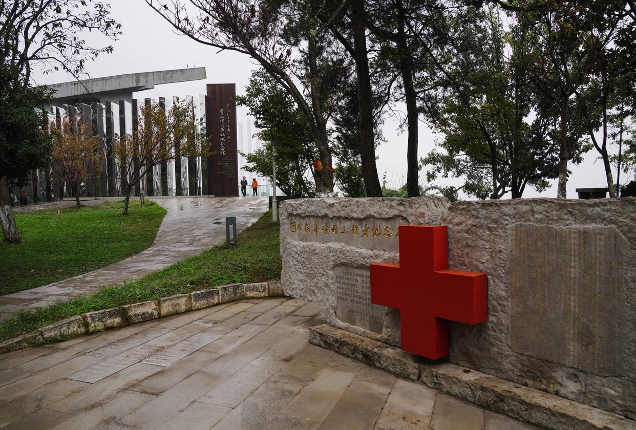 这是10月25日在中国红十字会救护总队贵阳图云关抗战纪念园拍摄的国际援华医疗队纪念碑。新华社记者 周佳谊 摄