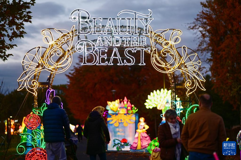 今年的灯光展以童话《美女与野兽》为主题,吸引众多当地居民和游客前来观赏。